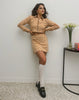 This set has everything! From it's warm colors and fun statement pattern that will brighten your chilly days to its very of-the-moment 70s vibe, our yellow damier set is definitely a winner. Pair it with a cute sock and loafers, sneakers or a kitten heel and you are ready to go! It works great as a transitional outfit: take it into the colder months by layering with tights, a knee-high boot and a leather trench. You're all set for Fall!